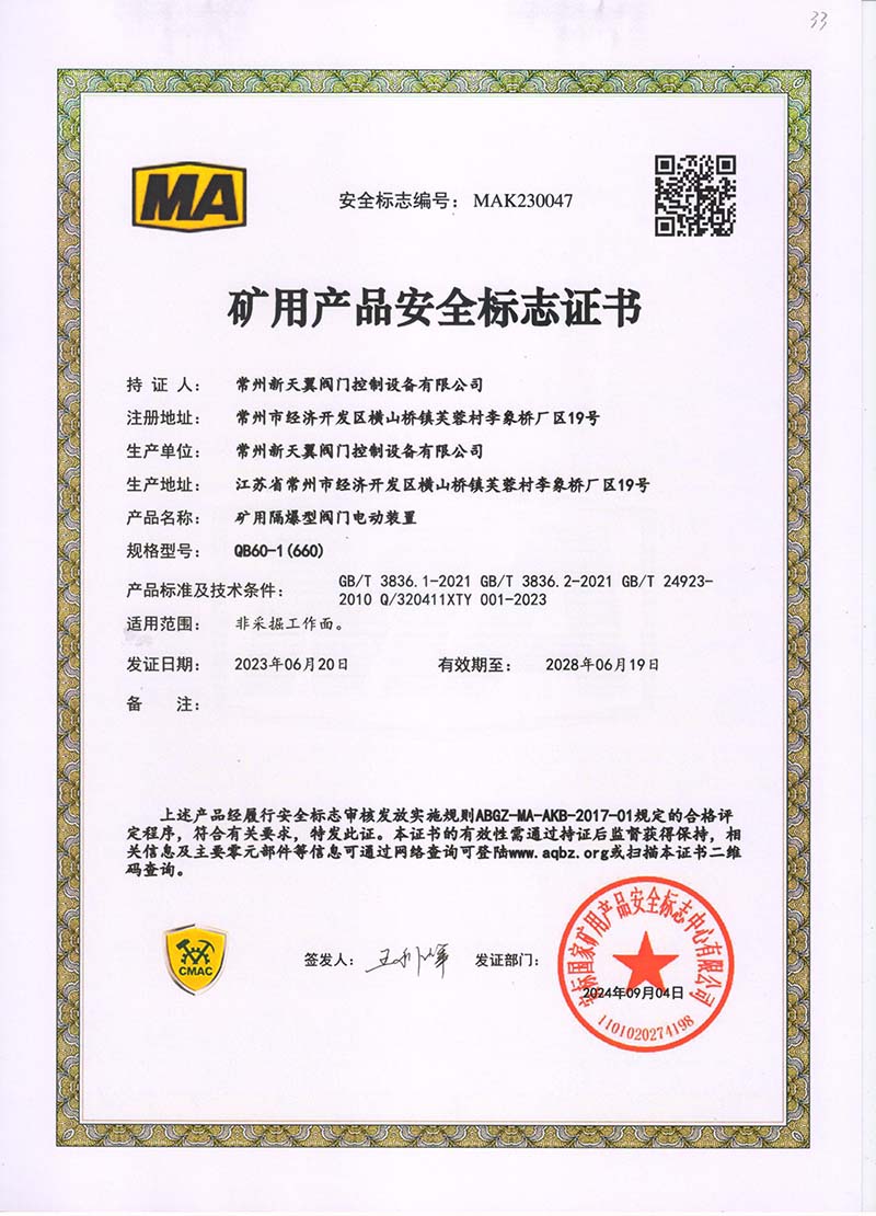 礦用隔爆ZB10-24中國國家強制性產品認證證書110.2